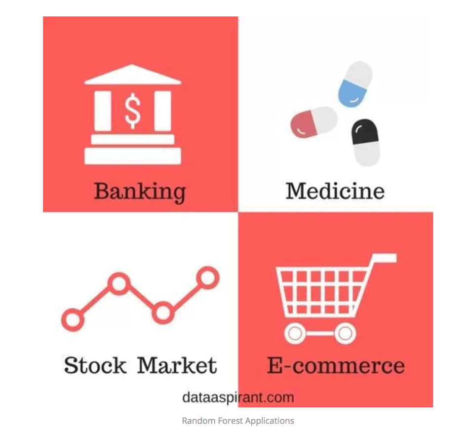 - For the application in medicine, Random Forest algorithm can be used to both identify the correct combination of components in medicine, and to identify diseases by analyzing the patient’s medical records.